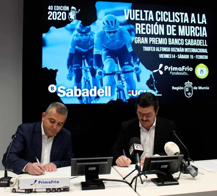 En la firma, que ha tenido lugar en la sede de Primafrio, Juan Conesa ha destacado que la Vuelta Ciclista a Murcia supone una representación clara de valores como el esfuerzo o el sacrificio, aspectos que definen también a Primafrio y que nos han permitido ser una compañía líder en su sector. Además, ha subrayado, “tener la oportunidad de colaborar con esta prueba, que es un referente a escala nacional e internacional, es motivo de gran orgullo para nosotros”.